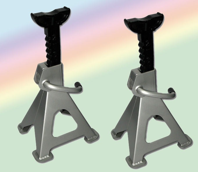 Coppia di cavalletti sollevatori per automobili, moto, camper e furgoni con portata massima di 3 tonnellate. Ideale per parcheggiare la propria motocicletta in garage per lunghi periodi, evitando di ritrovare le ruote danneggiate. Può essere anche utilizzato da professionisti del settore della meccanica, elettrauti o anche gommisti.