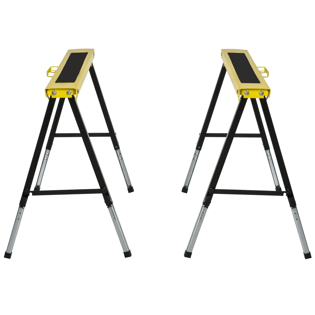 Set 2 Cavalletti da Lavoro Pieghevoli Telescopici Altezza Regolabile in Metallo Giallo e Nero