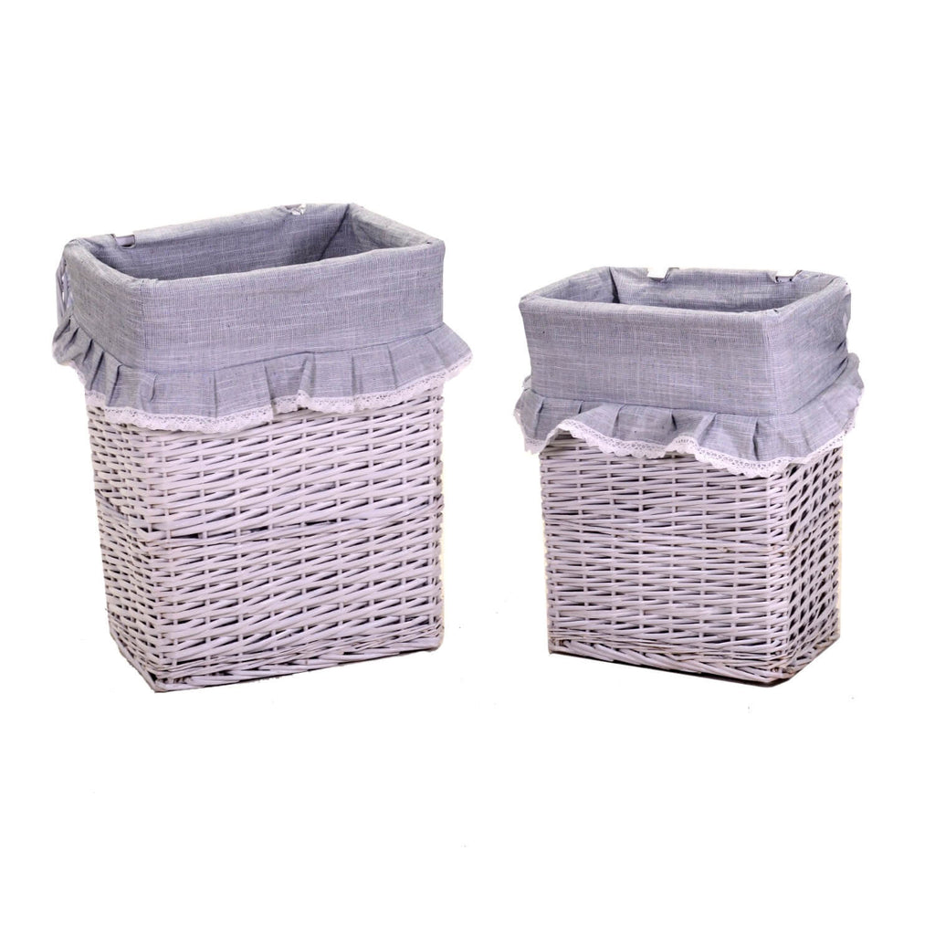 Set 2 Ceste in Vimini 45x34H56cm Pizzo E Volant Bianco