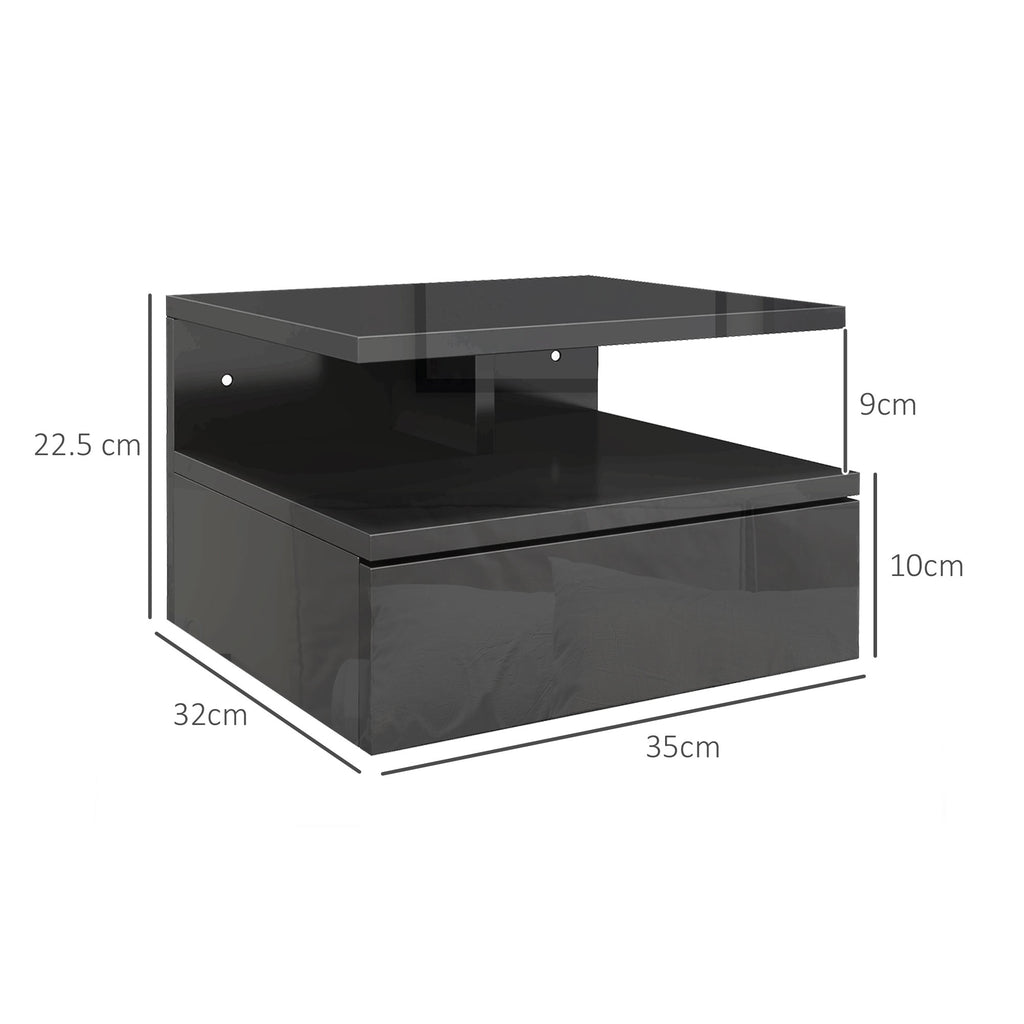 Set 2 Comodini Sospesi con Cassetto e Mensola 35x32x22,5 cm Nero Lucido