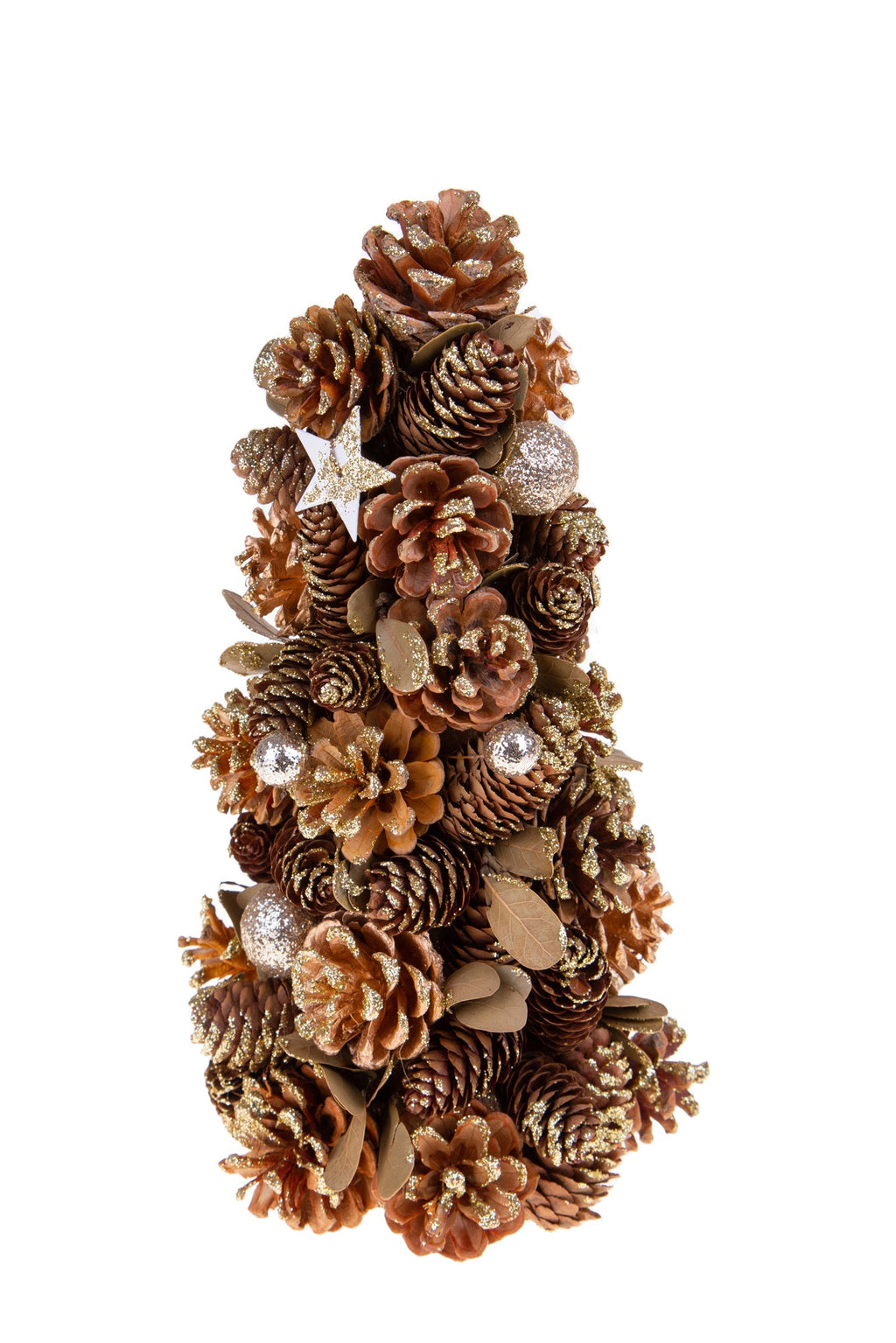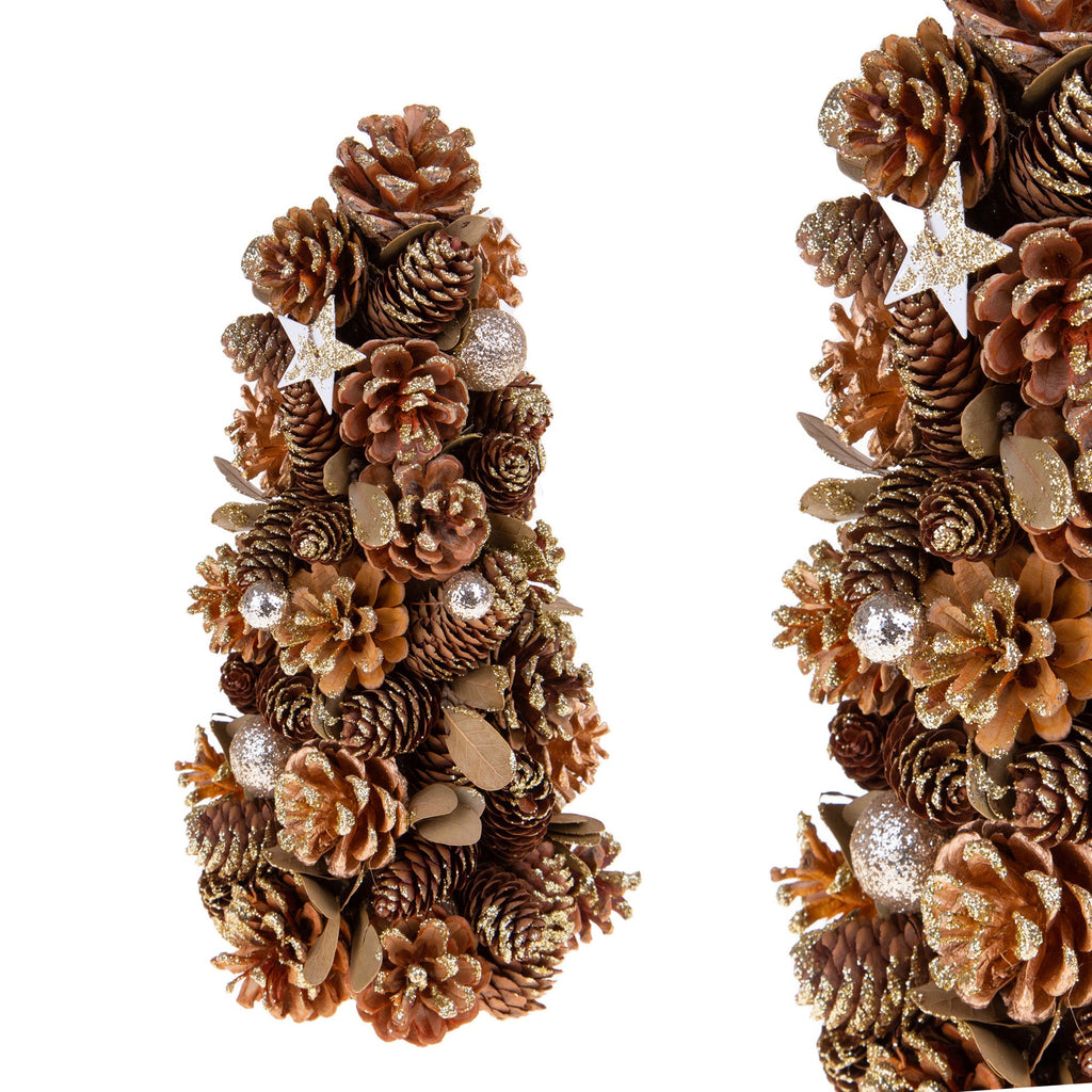 Set 2 Coni Decorativi 30 cm Natale con Stelle e Pigne