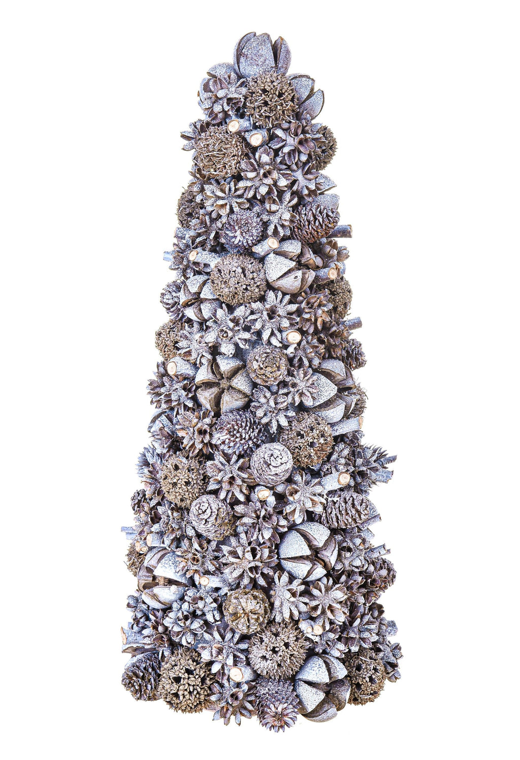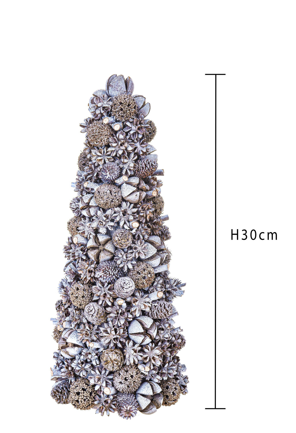 Set 2 Coni Decorativi con Mini Pigne H30 cm Grigio/Bianco
