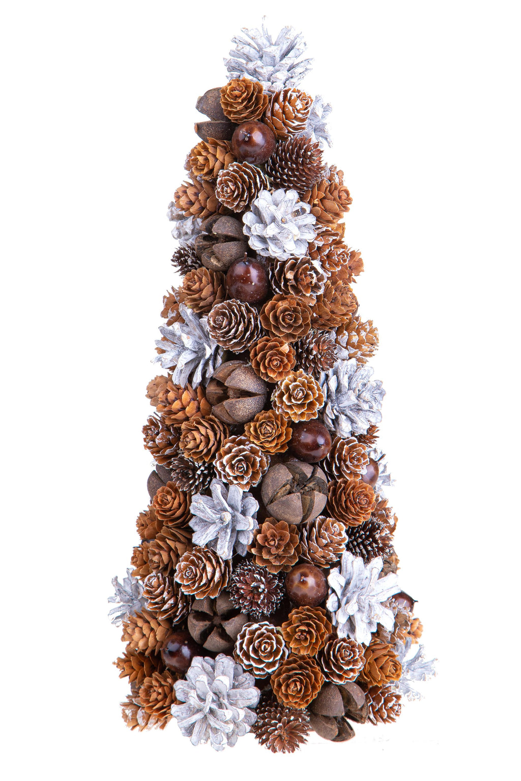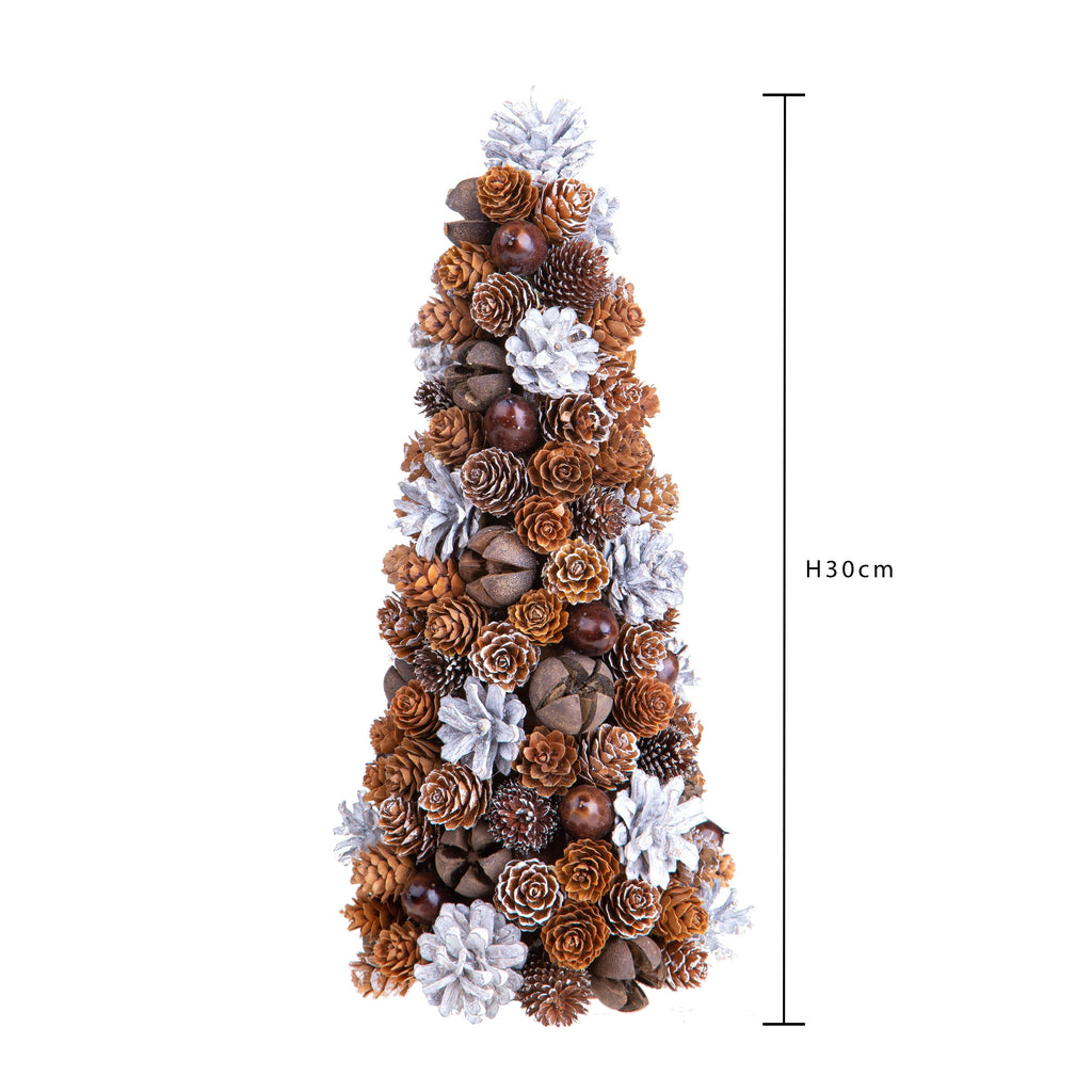 Set 2 Coni Decorativi con Mini Pigne H30 cm Marrone