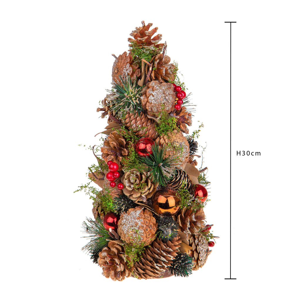 Set 2 Coni Decorativi con Sfere e Bacche H30 cm Rosso
