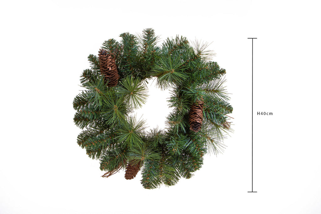 Set 2 Corone Natalizie con Pigne 50 Tips Ø40 cm Verde