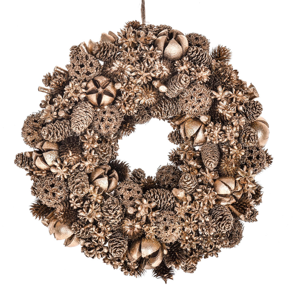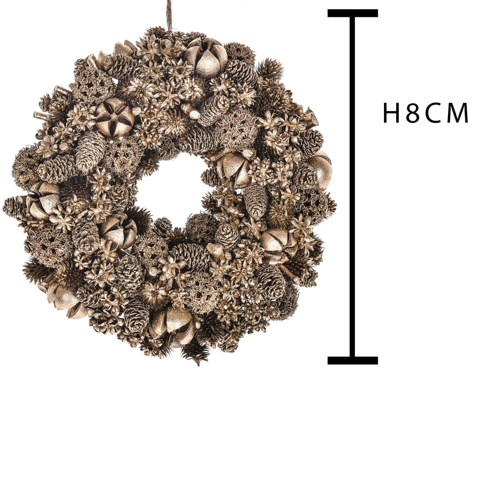 Set 2 Corone Natalizie con Pigne e Bacche Ø25 cm Oro