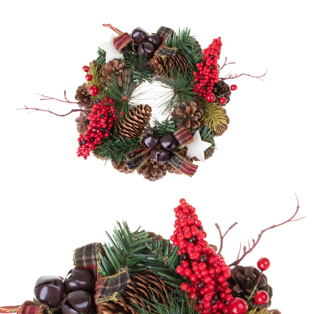 Set 2 Corone Natalizie con Pigne e Fiocchi Ø22 cm Rosso