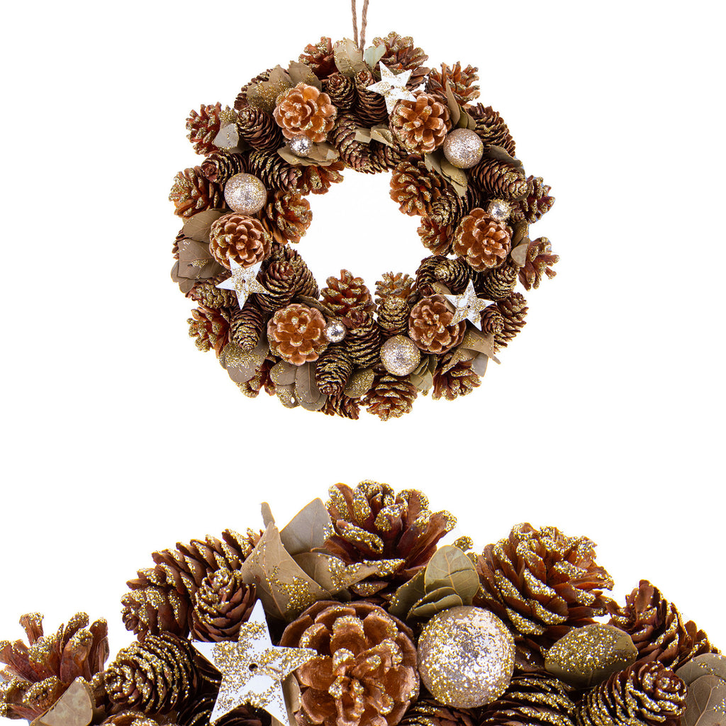 Set 2 Corone Natalizie con Stelle e Pigne Ø30 cm Oro
