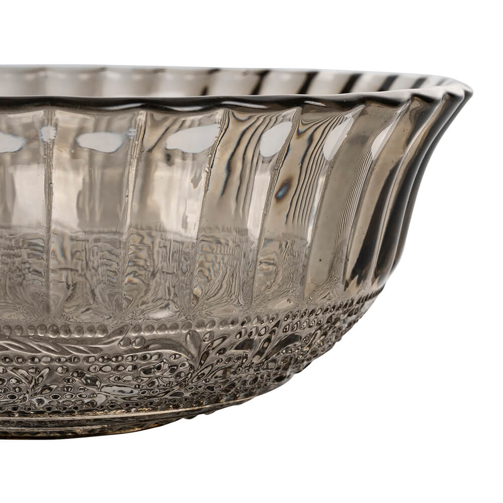 Set 2 Insalatiere con Decoro in Rilievo in Vetro VdE Tivoli 1996 Imperial Fumè e Grigio