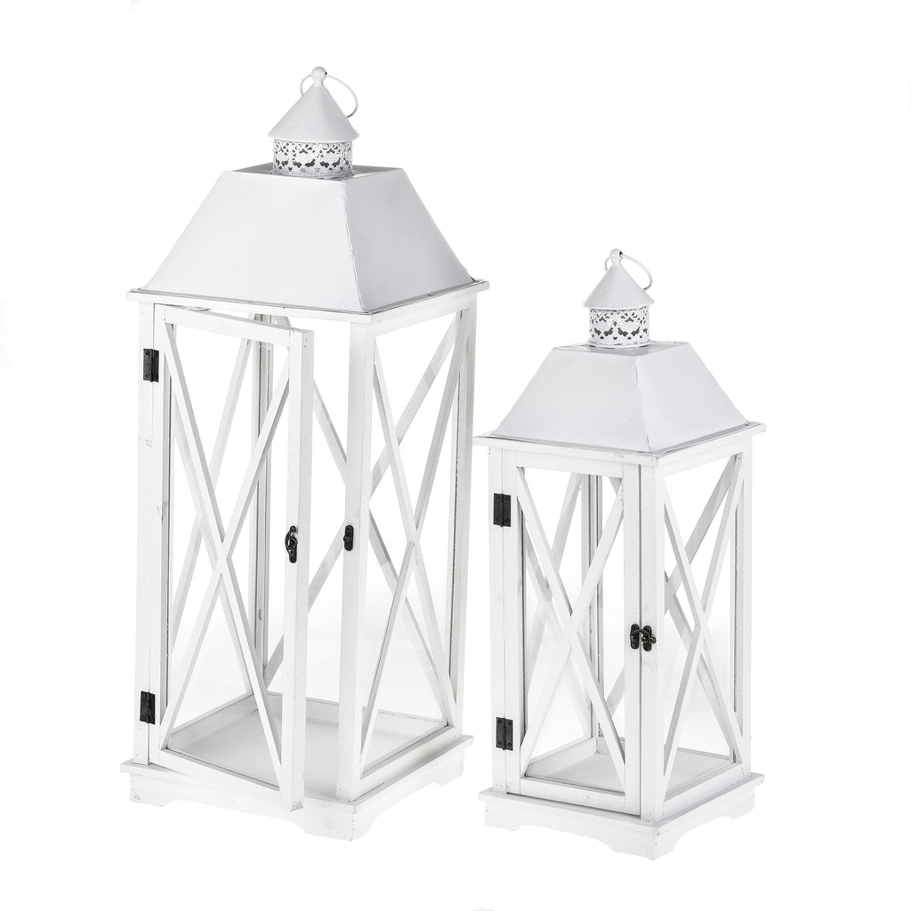 Set Di 2 Lanterna In Legno. Altezza 80 Cm