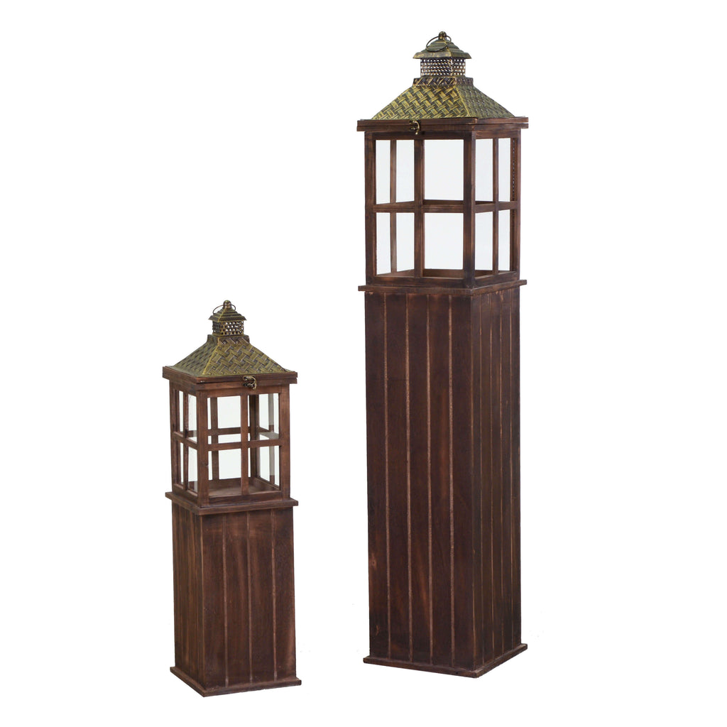 Set 2 Lanterna in legno marrone scuro rettangolare