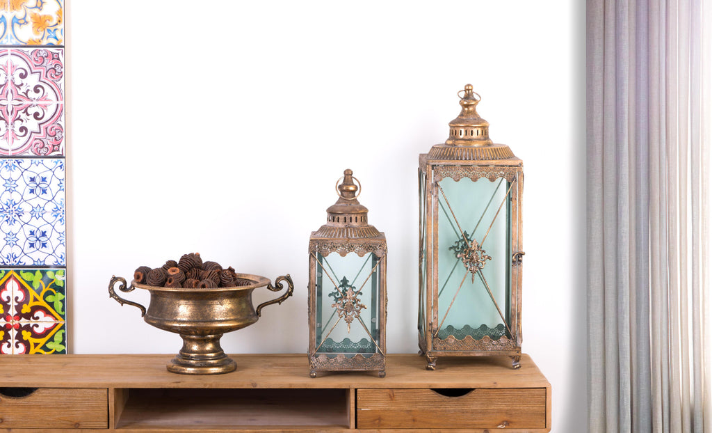 Set Di 2 Lanterna In Metallo. Altezza 63 Cm