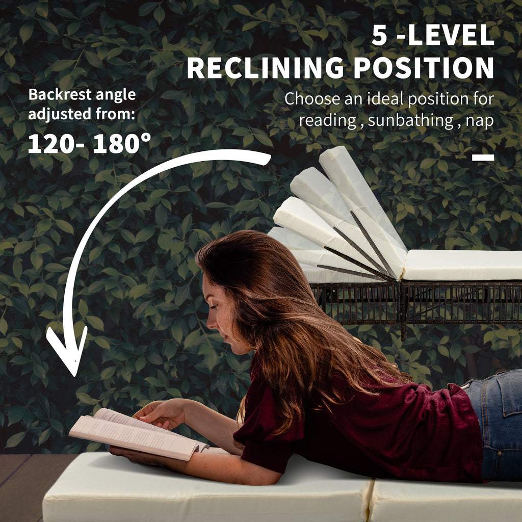 - RECLINABILE: Ogni sdraio prendi sole è dotata di schienale regolabile su 5 livelli, a un'angolazione da 120° a 180°, per adattarsi alle tue necessità. Puoi reclinare completamente lo schienale per un relax completo