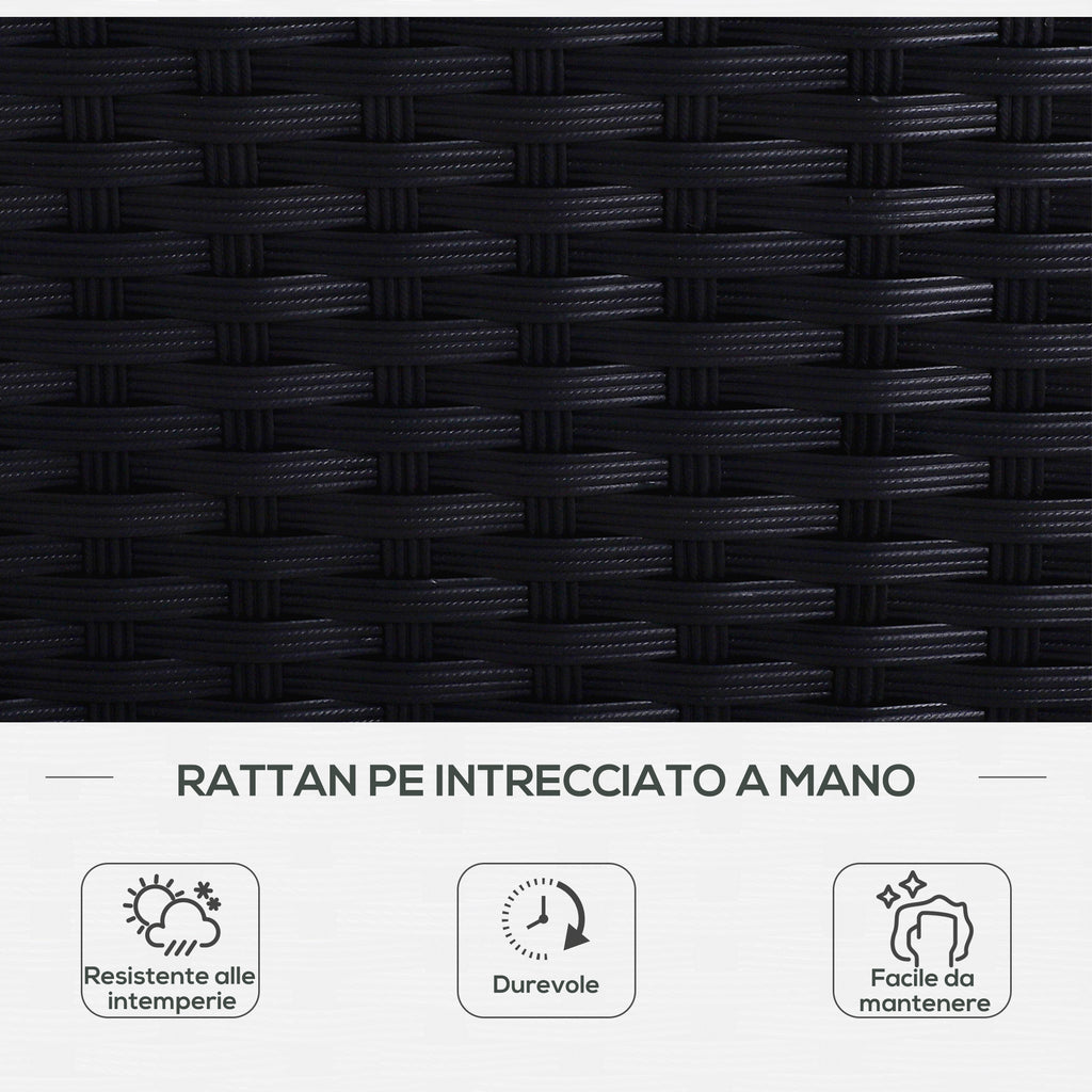 Struttura in acciaio con rivestimento in rattan PE, resistente ai raggi UV e alle intemperie.
