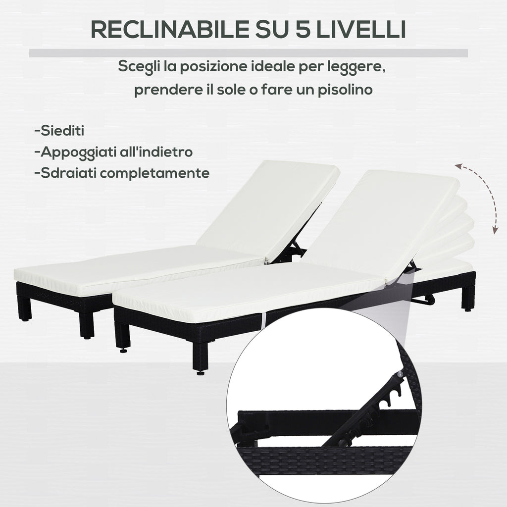 Set 2 Lettini Prendisole in Acciaio Nero con Cuscino Crema