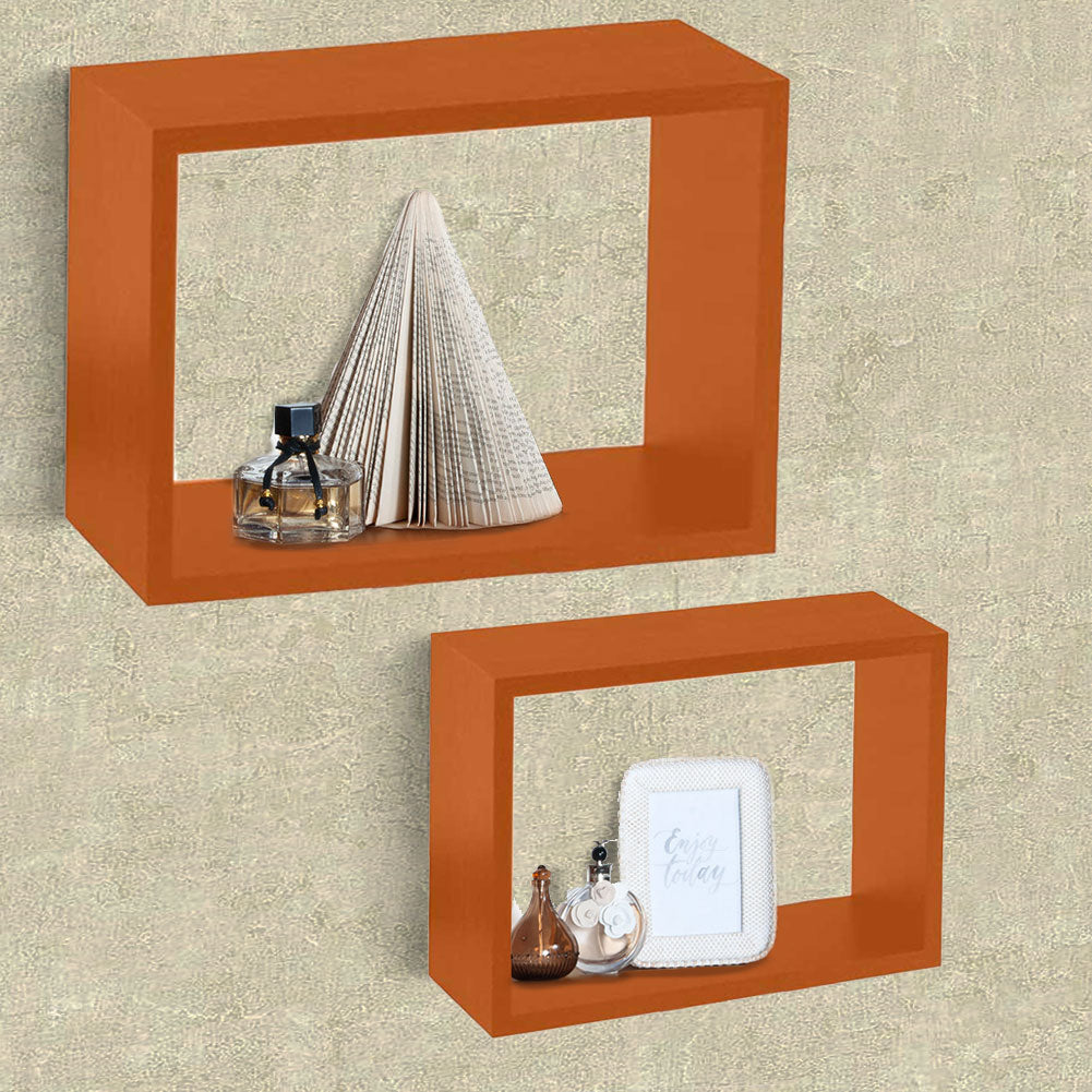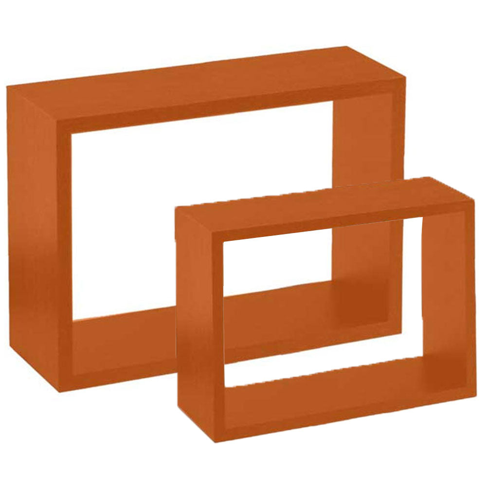 1 x Set 2 Mensole a Muro Moduli da Parete Pensili Rettangolari Supporto Nascosto Portaoggetti in Legno Arancione