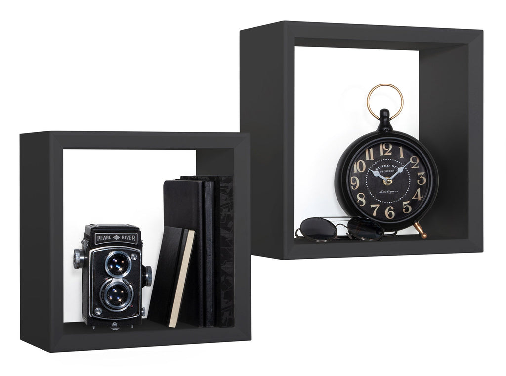 Set 2 Mensole Cubo da Parete Quadrato in Fibra di Legno Ginevra Nero