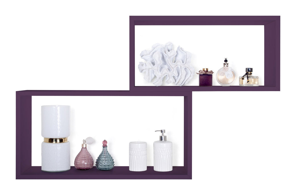 Set 2 Mensole Cubo da Parete Rettangolare in Fibra di Legno Bislugno Viola Melanzana