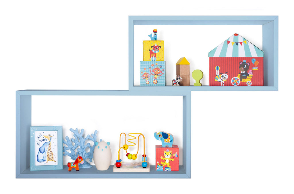 Set 2 Mensole Cubo da Parete Rettangolare in Fibra di Legno Bislungo Blu Baltico