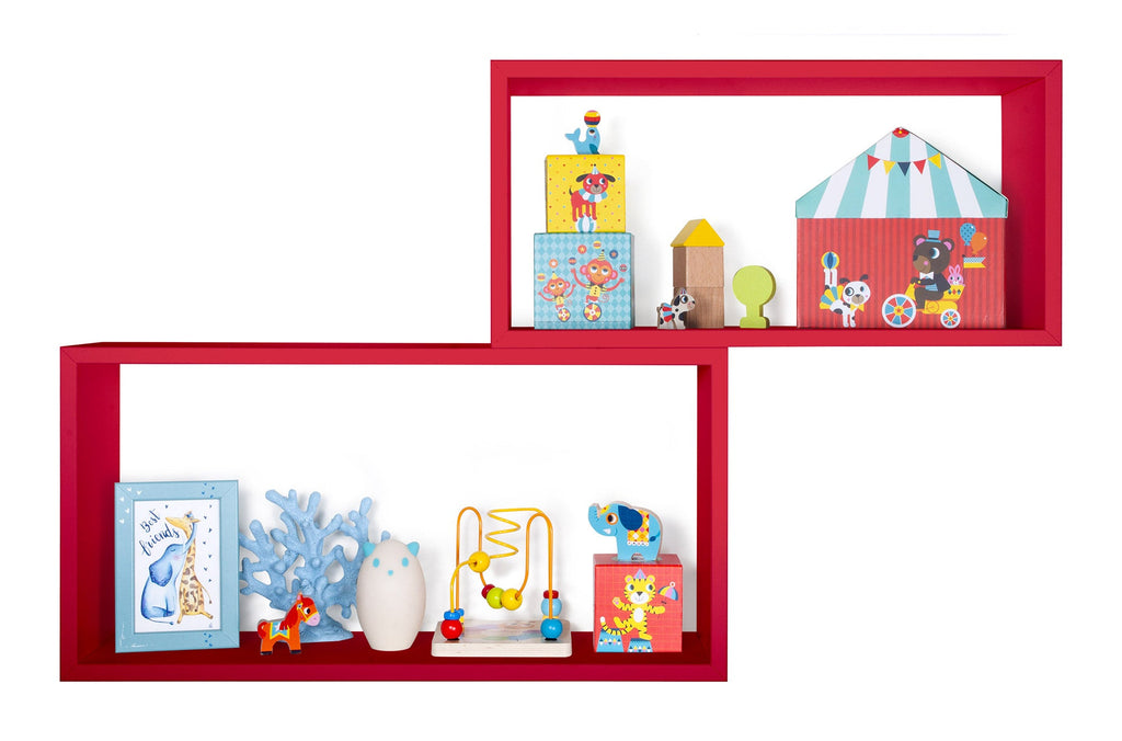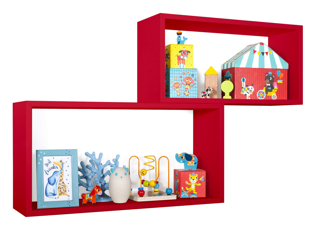 Set 2 Mensole Cubo da Parete Rettangolare in Fibra di Legno Bislungo Rosso