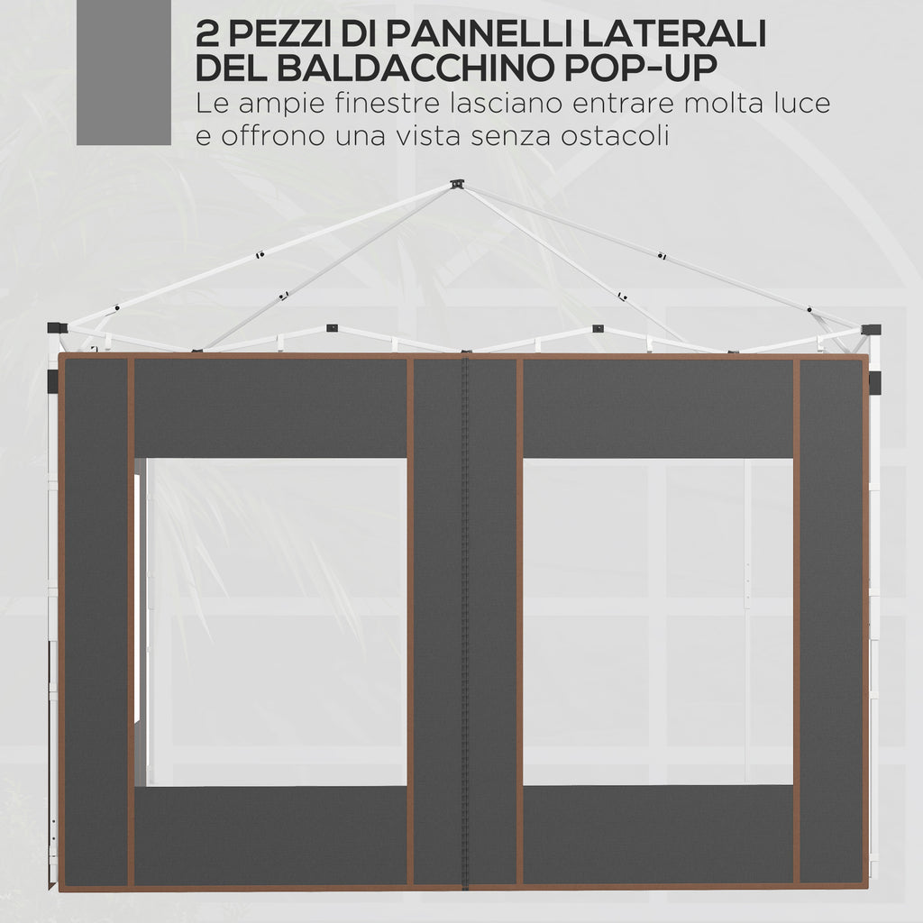 Set 2 Pareti Laterali per Gazebo 3x3m e 3x6m 295x195cm in Tessuto Oxford Grigio