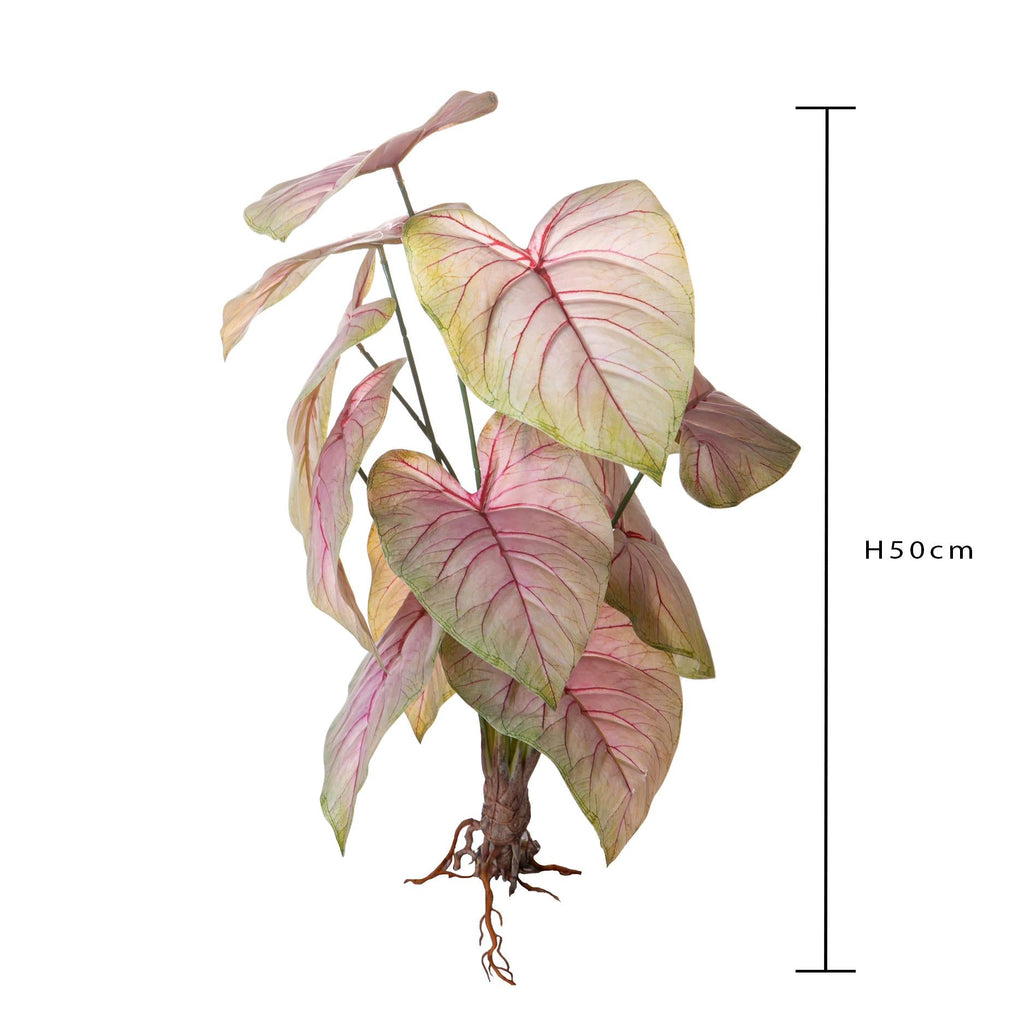 Set 2 Piante Artificiali Caladium con 12 Foglie 50 cm