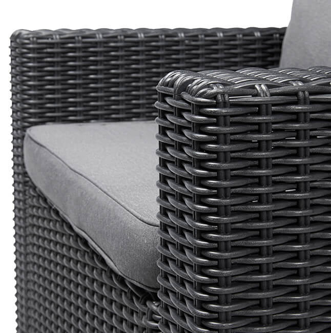 Rilassati nel comfort delle poltrone California. Realizzate con resina durevole e resistente agli agenti atmosferici che riproduce l'intreccio arrotondato del rattan. Non necessitano di manutenzione.