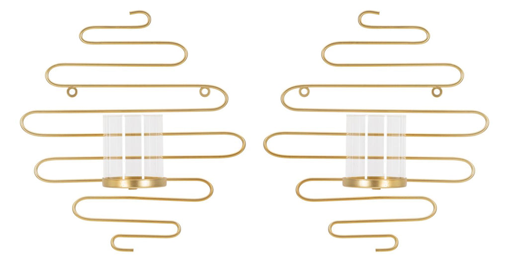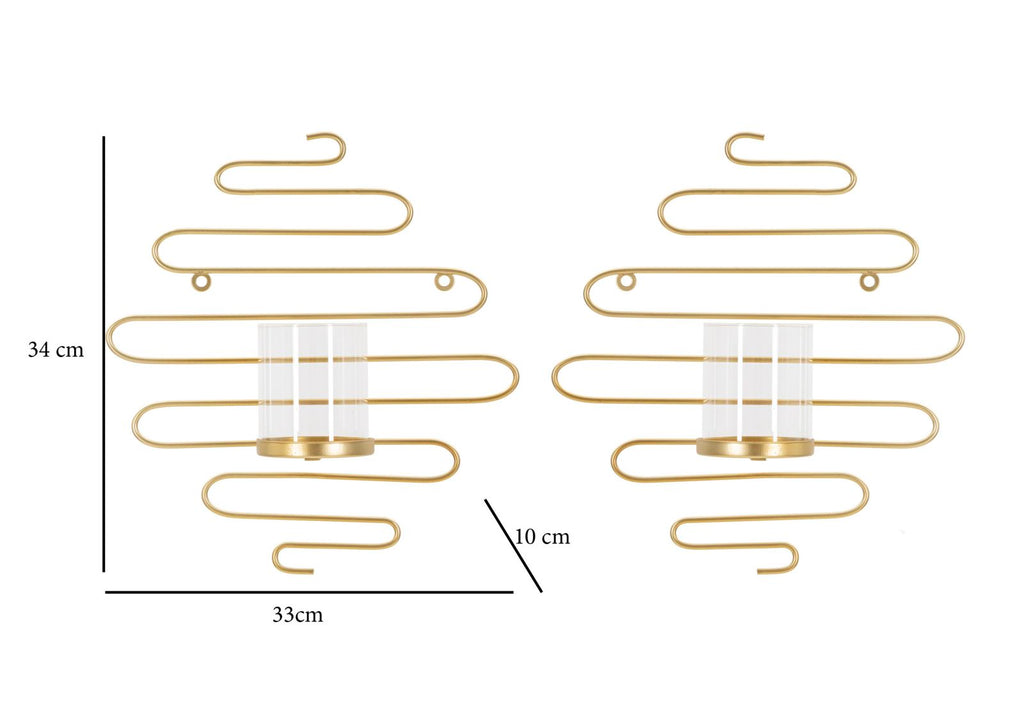 Set 2 Portacandele da Parete 33x10x34 cm in Metallo Oro
