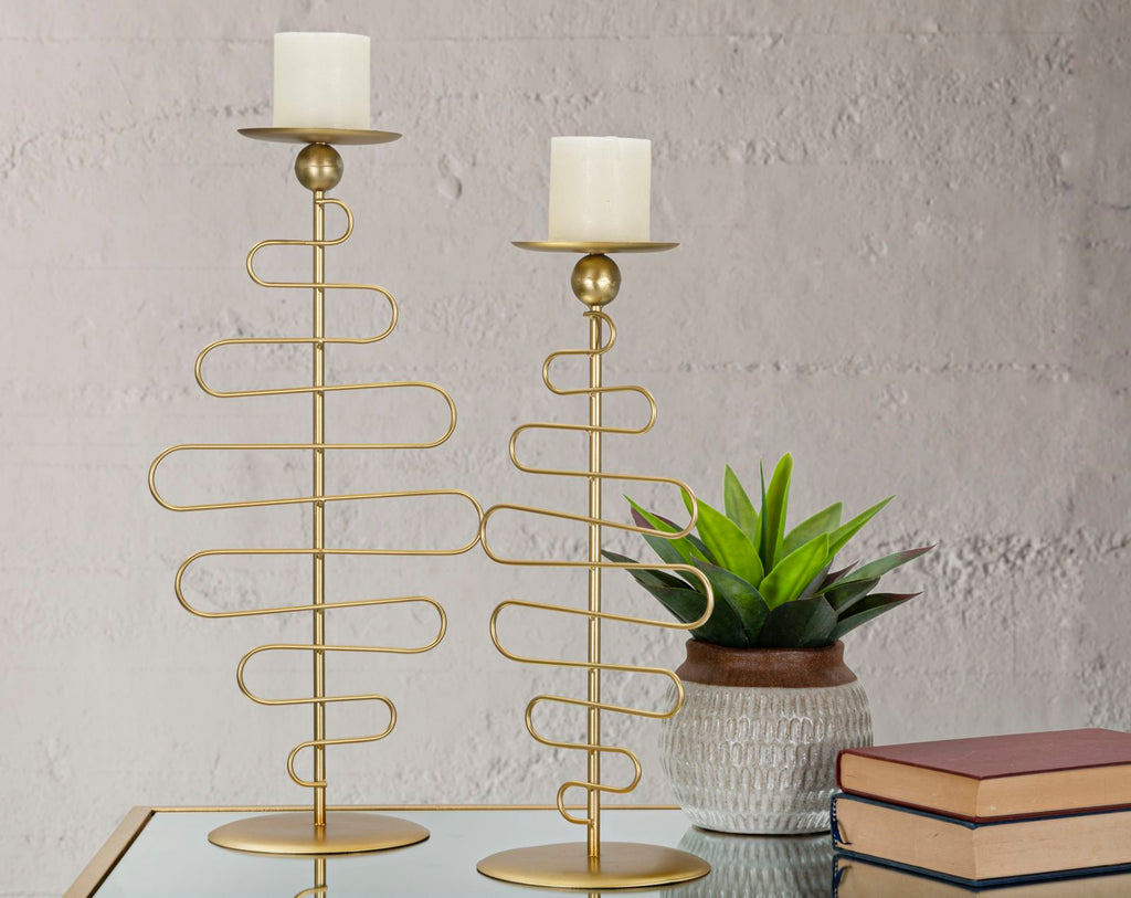 Set 2 Portacandele da Tavolo in Metallo Oro