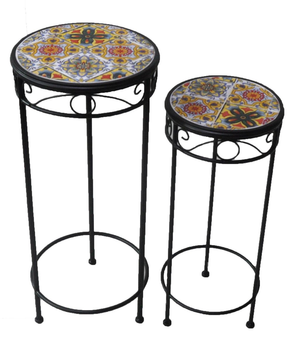 Set 2 Portapiante a Sgabello da Esternto in Ferro Battuto con Mosaico Soriani Ravello
