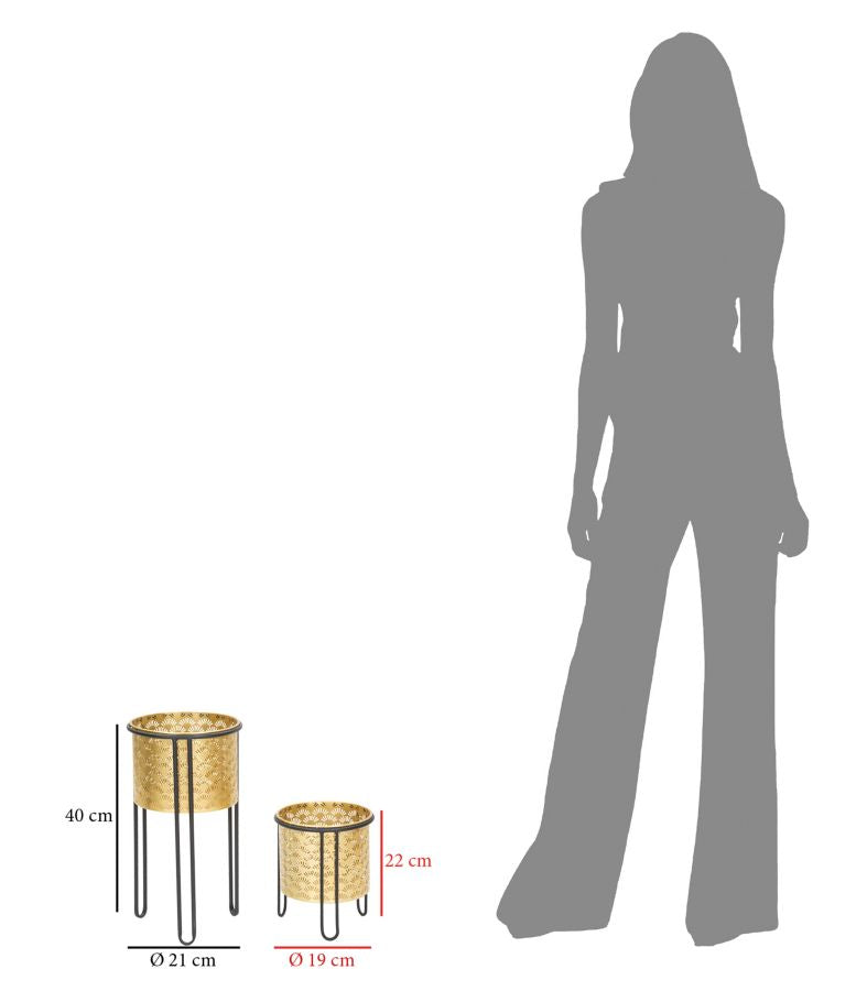 Set 2 Portavasi Ø21x40-19x22 cm in Metallo Nero e Oro