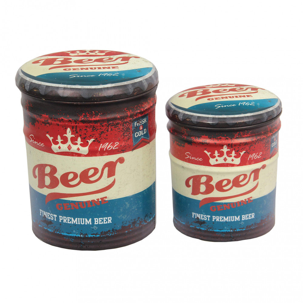 Set 2 Pouf Contenitore Tondo in MDF Birra Blu e Rosso