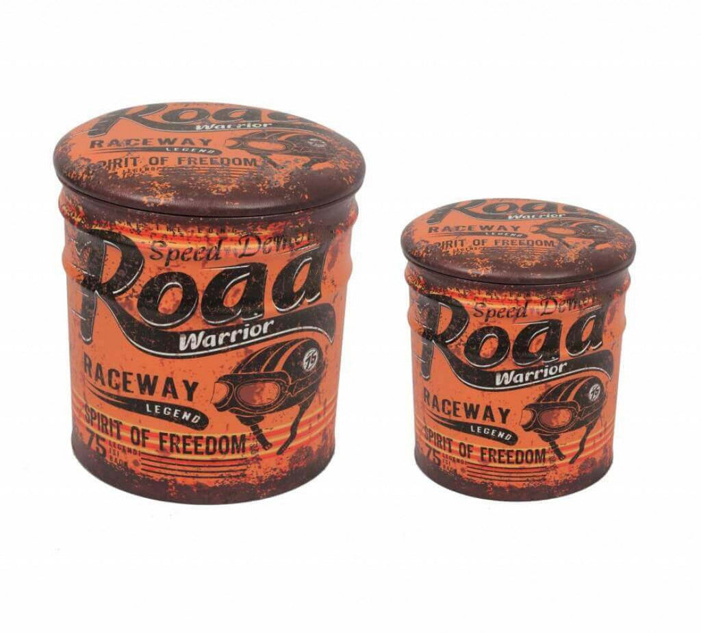 Set 2 Pouf Contenitore Tondo in MDF Moto Arancione