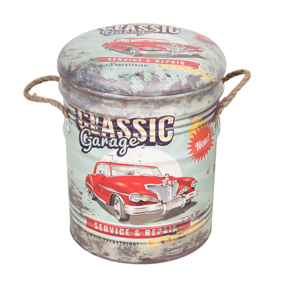 Set 2 Pouf Contenitore Tondo in MDF Verde Chiaro/Bianco