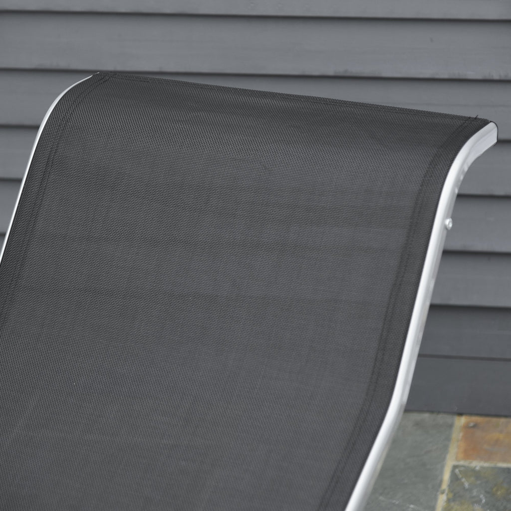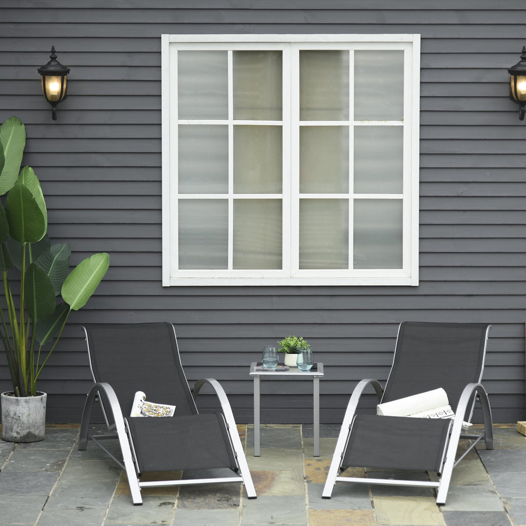 Set 2 Sdraio e Tavolino da Giardino in Metallo e Tessuto Nero