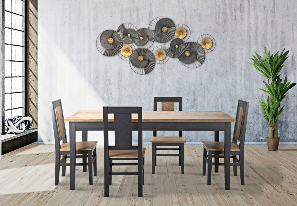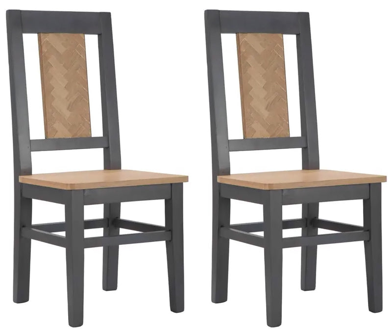 Set di 2 sedie in legno bicolore. Il design semplice e squadrato abbinato alla particolare lavorazione dello schienale combinano alla perfezione l'eleganza e la raffinatezza.