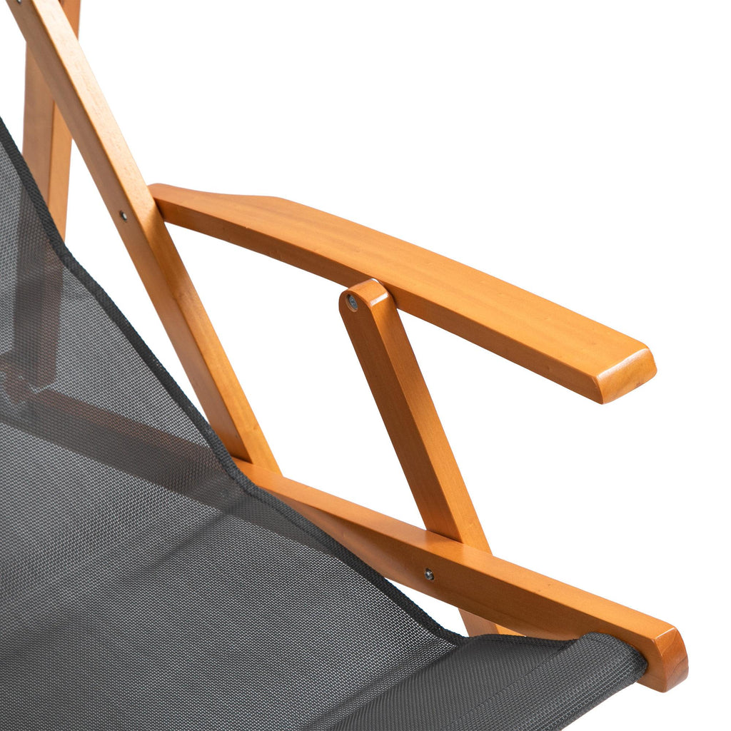 Set 2 Sedie a Sdraio da Giardino Pieghevoli in Legno e Tessuto a Rete Grigio