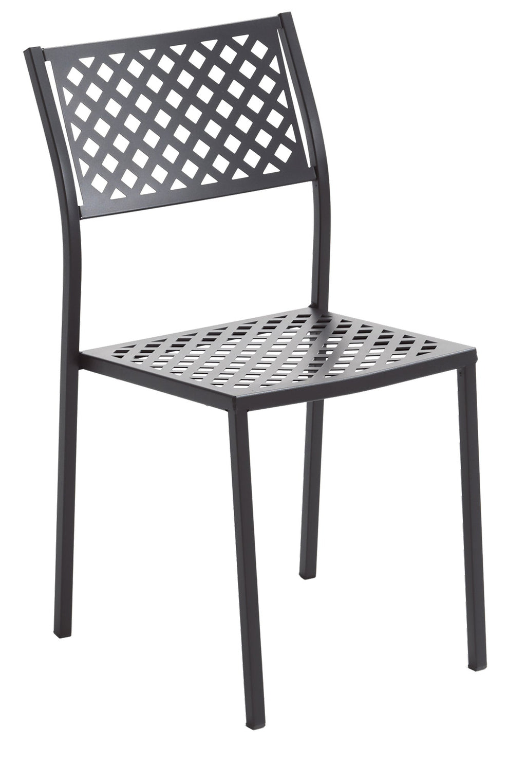 Set di 2 sedie impilabili con struttura in acciaio pre-zincato e verniciatura poliestere color antracite.