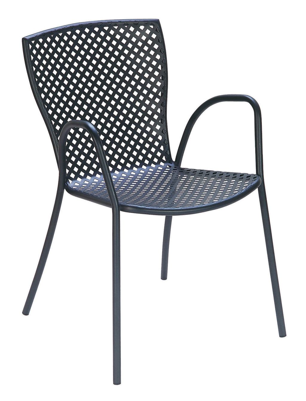 Set di 2 sedie con braccioli impilabili con struttura in acciaio, rete acciaio pre-zincato e verniciatura poliestere color antracite.