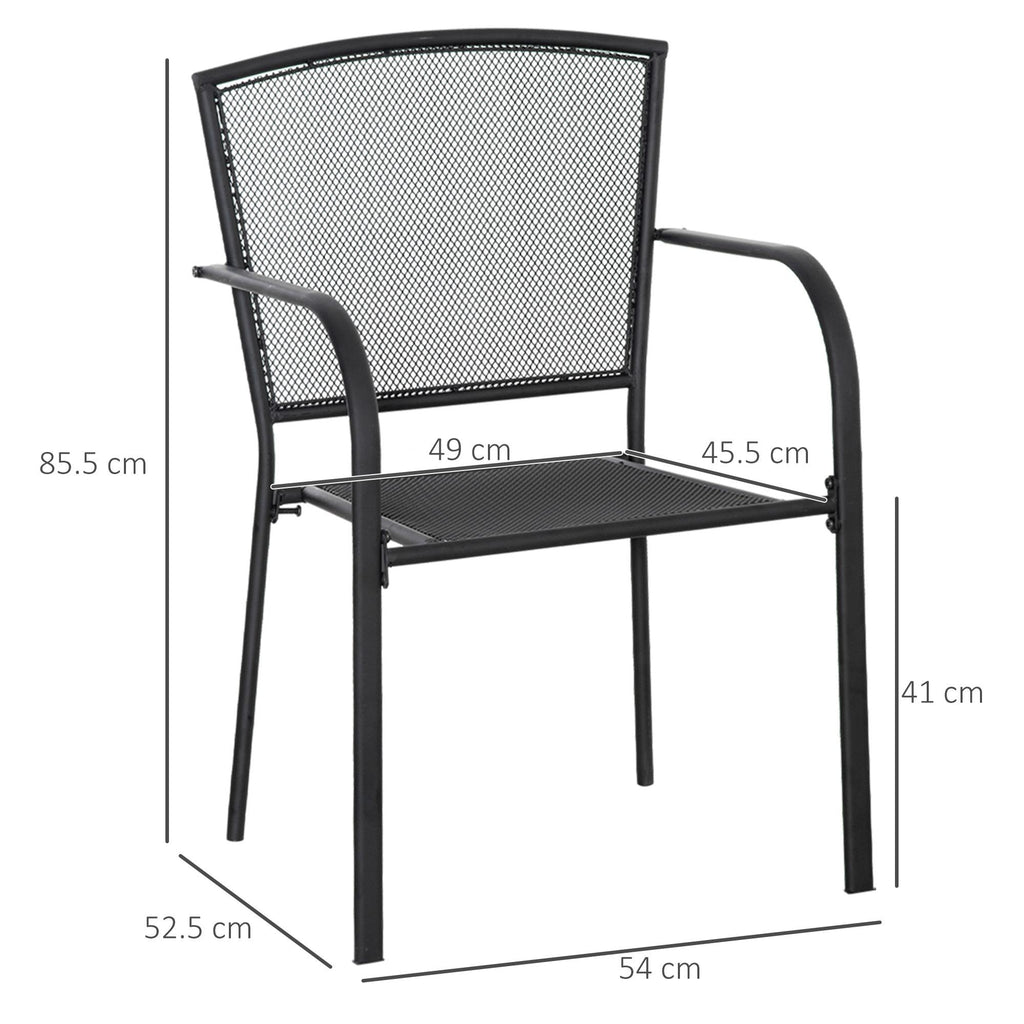 Per il tuo arredamento da giardino scegli questo set di 2 sedie da esterno . Hanno un design semplice ma allo stesso tempo elegante, con una robusta struttura in metallo resistente all'uso in spazi esterni. Lo schienale e la seduta in rete metallica assicurano massima traspirabilità e i braccioli ti permettono di rilassarti in ogni momento. Rinnova il tuo giardino, cortile, patio e ogni spazio all'aperto con queste sedie e goditi le belle giornate!