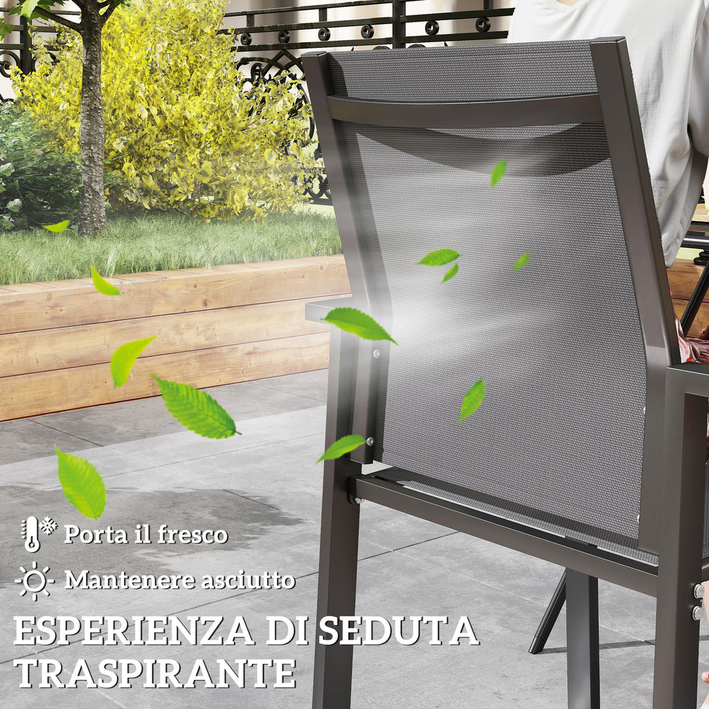 Set 2 Sedie da Giardino Impilabili 56x58x89 cm con Seduta Traspirante in Alluminio e Textilene Grigio Carbone