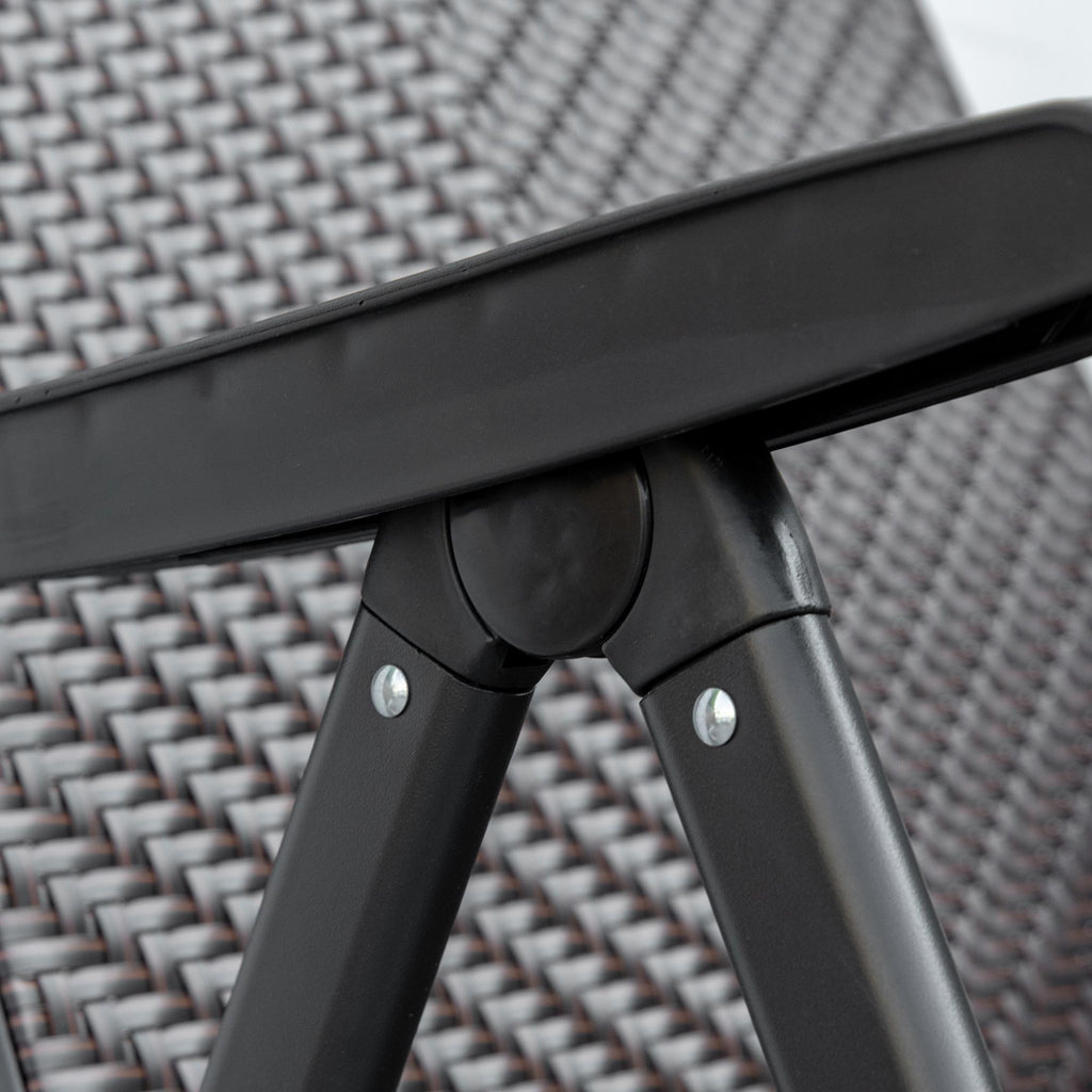 Le sedie pieghevoli in rattan PE da 2 pezzi sono perfette per il tuo spazio esterno. Queste sedie a sdraio da giardino sono realizzate con una struttura in acciaio resistente avvolta con rattan PE intrecciato a mano. Le sedie sono pieghevoli per una facile conservazione e trasporto, completeranno il tuo arredamento esterno, dal giardino al patio, dal bordo piscina al campeggio. Goditi il tuo relax all'aria aperta.
