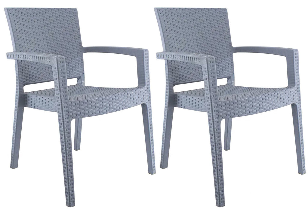 Set 2 Sedie da Giardino in Stile Rattan Grigio