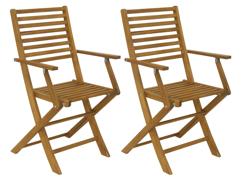 Set 2 Sedie da Giardino Pieghevoli 56x53x92 cm con Braccioli in Legno Naturale