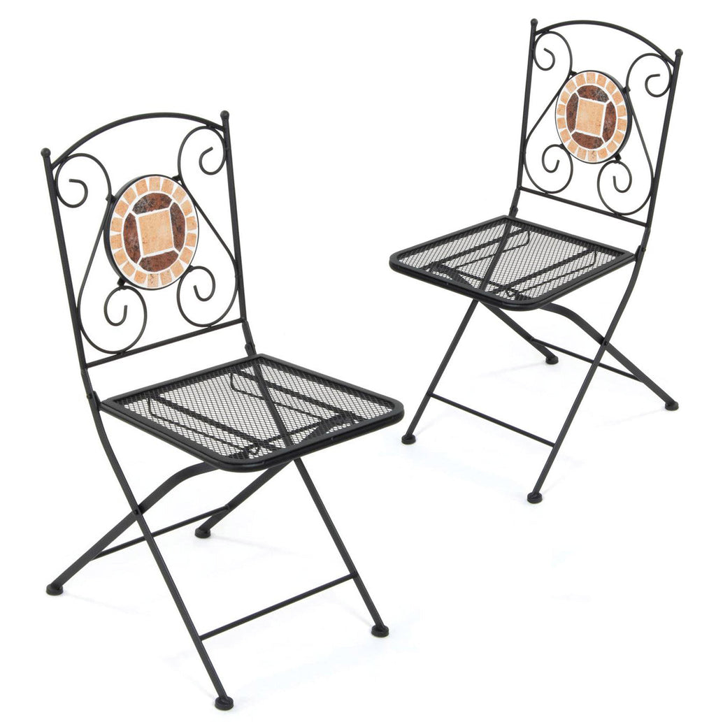 Set 2 Sedie da Giardino Pieghevoli in Ferro con Mosaico Zeus