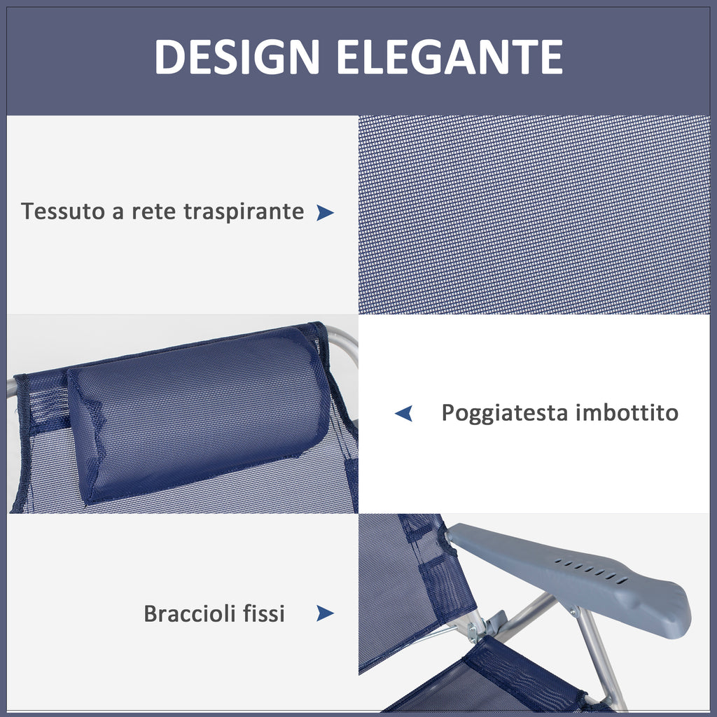 Set 2 Sedie da Pesca Pieghevoli e Reclinabili 6 Livelli 62x65x80 cm in Alluminio e Tessuto Blu Scuro