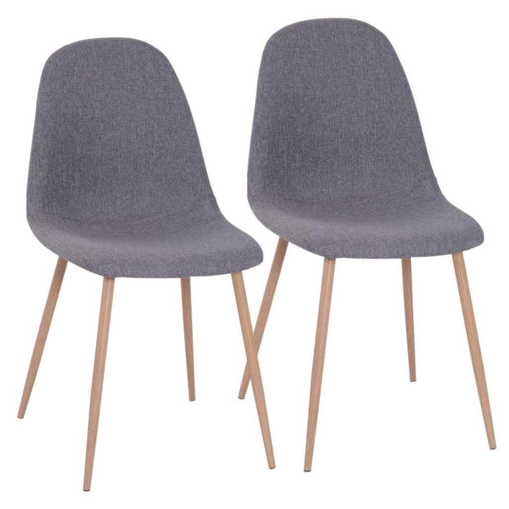 Set 2 Sedie da Pranzo Design Moderno in Lino con Gambe in Metallo Grigio