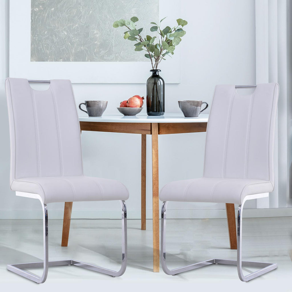 Set 2 Sedie Design Moderno in Metallo con Rivestimento in Pelle PU Bianco