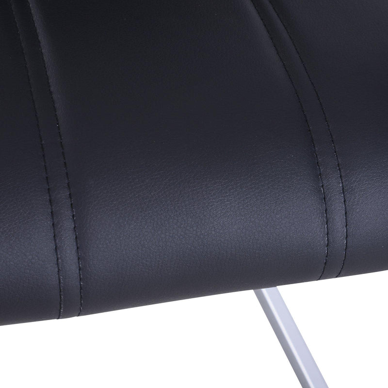 La sottile curvatura dello schienale imbottito e rivestito in pelle PU dona uno stile unico senza sacrificare il comfort.
