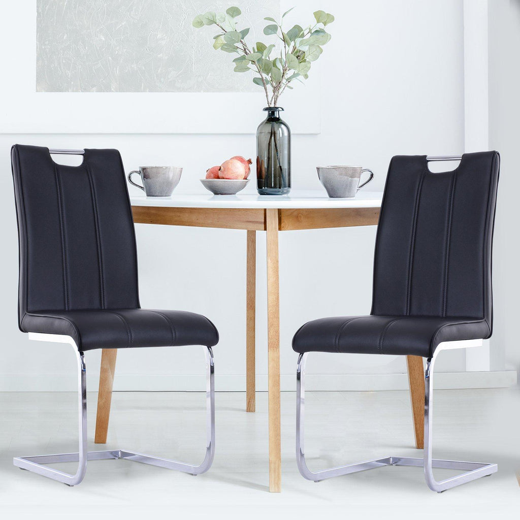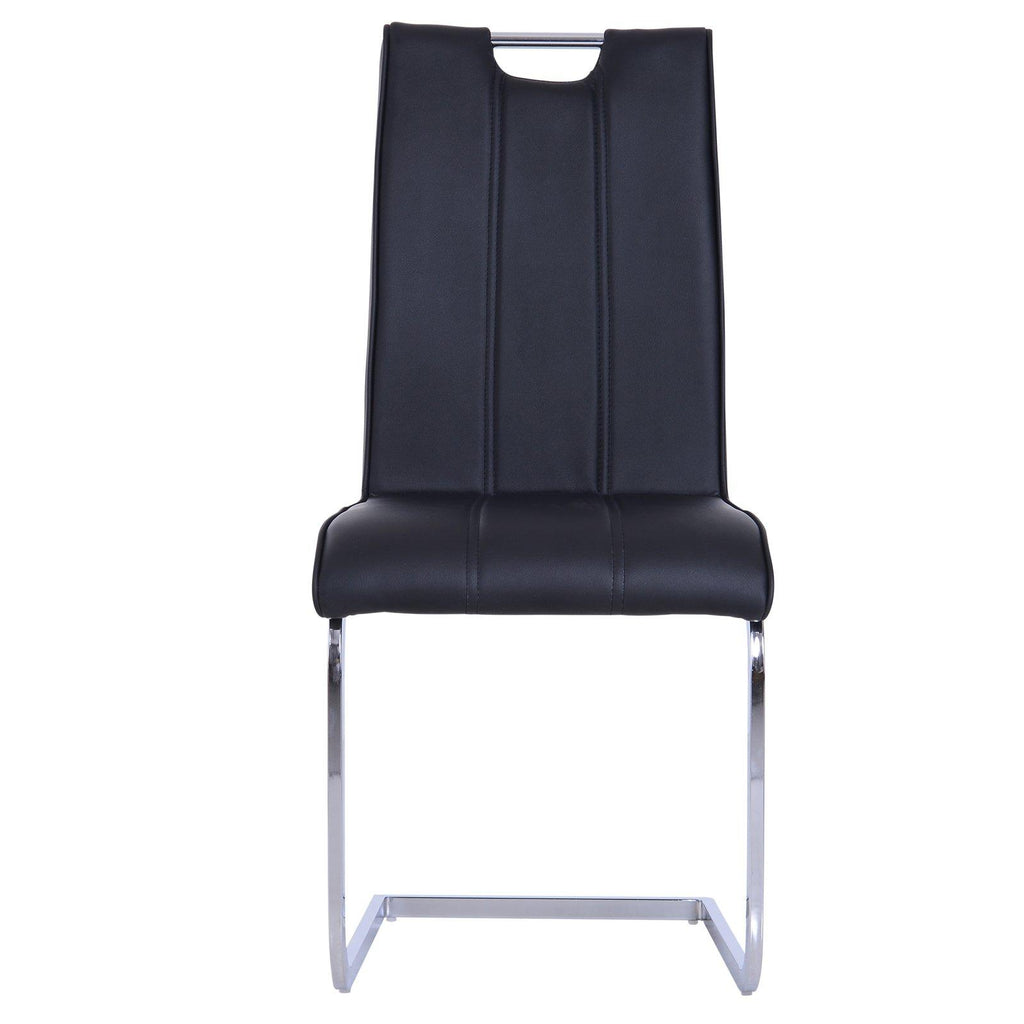 Set 2 Sedie Design Moderno in Metallo con Rivestimento in Pelle PU Nero